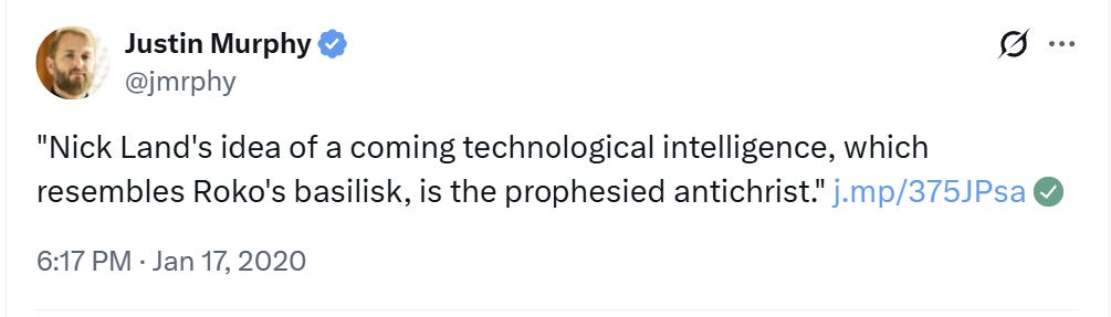 Here’s a good article on Land’s apocalyptic side that was helpful for me early on. Believe I picked it up from this Justin Murphy tweet.